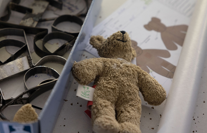 Das samtige Fell für die Tiere ist handgewebt, aus reiner Biobaumwolle. „Den Betrieb zu finden war schwierig“, erinnert sich Volker Senger, „es gibt praktisch keine Handwebereien mehr, die in Deutschland eigene Plüsche machen“.
