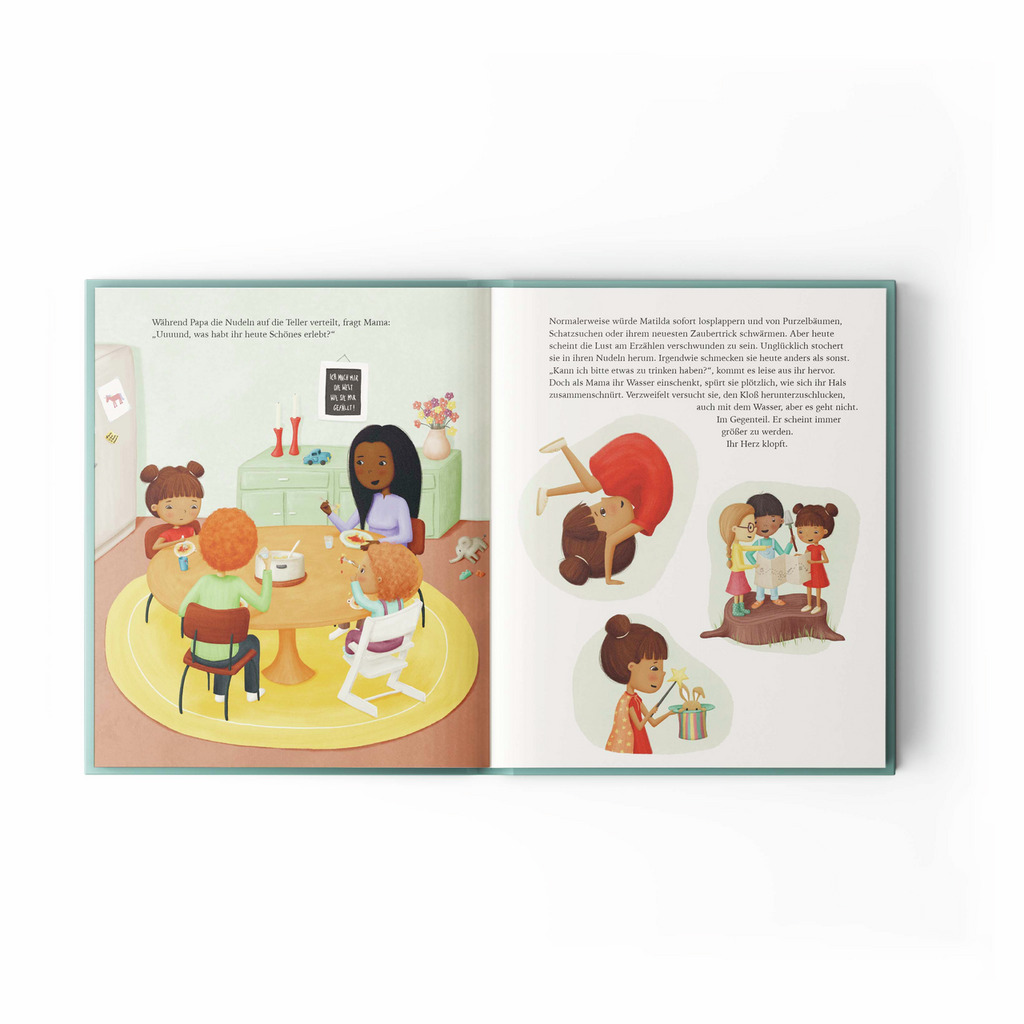 Actually, Matilda loves to eat butterfly noodles while telling her family about her exciting adventures. But today, dinner tastes different than usual. And she doesn't want to talk either. While everyone is sitting at the table, an emotional storm suddenly begins to rage inside her. Only after some time does Matilda bring her parents into her world of thoughts and together they realize that we all have days when everything becomes too much and which feel like a heavy backpack full of pebbles ...