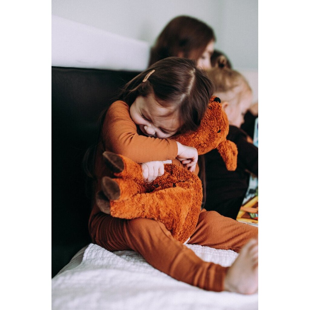 This Large Deer from the "Forest Animals" collection by Senger Naturwelt is your versatile cuddly toy and heat cushion in one! Made from GOTS-certified, sustainable materials, it delights young and old with its charming copper colour and soft organic cotton coat. It warms and cools when needed, a sustainable and stylish cuddly toy that decorates your home!