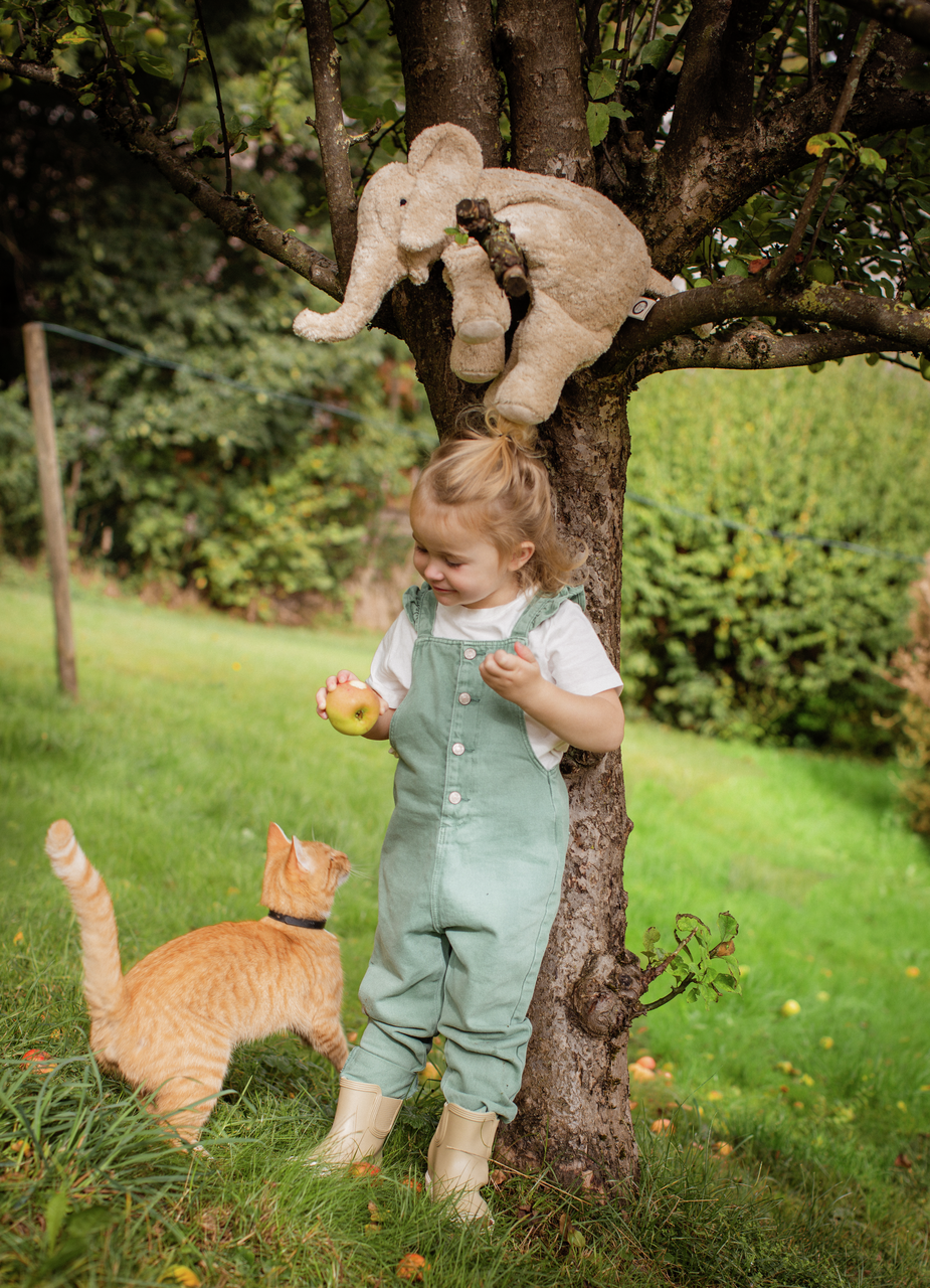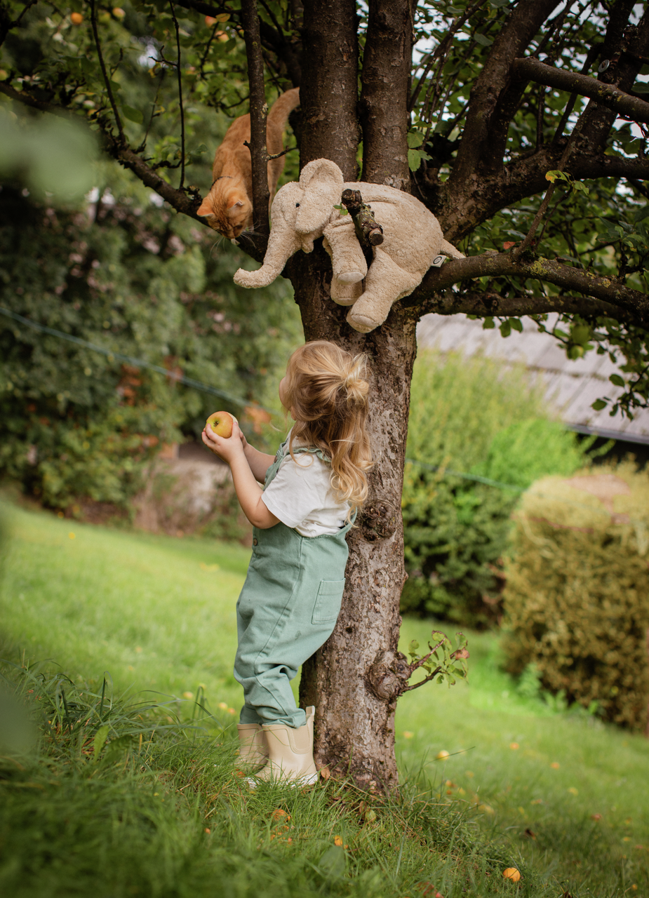 Our Large Elephant in linen colour is a gentle friend for every stage of life — strong, serene, and full of charm. Carefully handcrafted from GOTS-certified organic cotton and filled with pure sheep’s wool, it features a removable spelt husk pillow for natural warmth or cooling comfort. With its calm expression, sturdy shape, and timeless design, it brings a sense of quiet joy to any room. Made with love and sustainable materials, it’s a lifelong companion to treasure and cuddle.