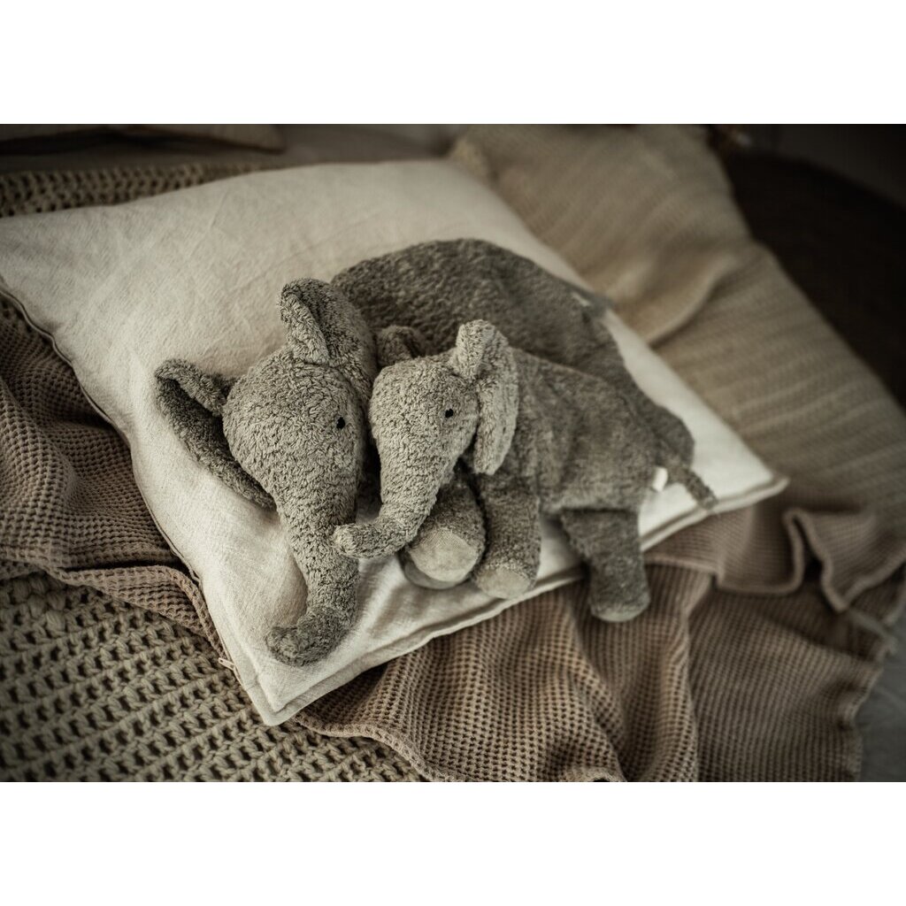 The Small Elephant cuddly toy from the "Exotic Animals" collection by Senger Naturwelt is not only cute, but also practical! It can be warmed or cooled, serves as a cosy companion or a chic room decoration, and delights young and old. Made from GOTS-certified cotton and virgin sheep's wool from Europe, it combines comfort and warmth with sustainability.