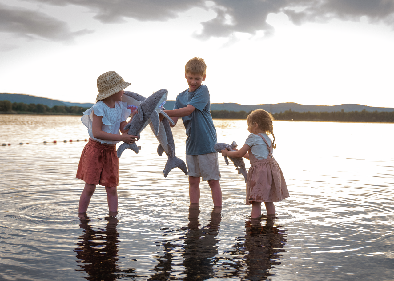 Our Big Shark is more than just a cuddly friend. Lovingly handmade from GOTS-certified organic cotton and filled with pure sheep’s wool, it holds a removable spelt husk pillow that gently warms or cools. With its soft shape and curious charm, it’s a comforting companion for little explorers – always ready to snuggle and soothe.