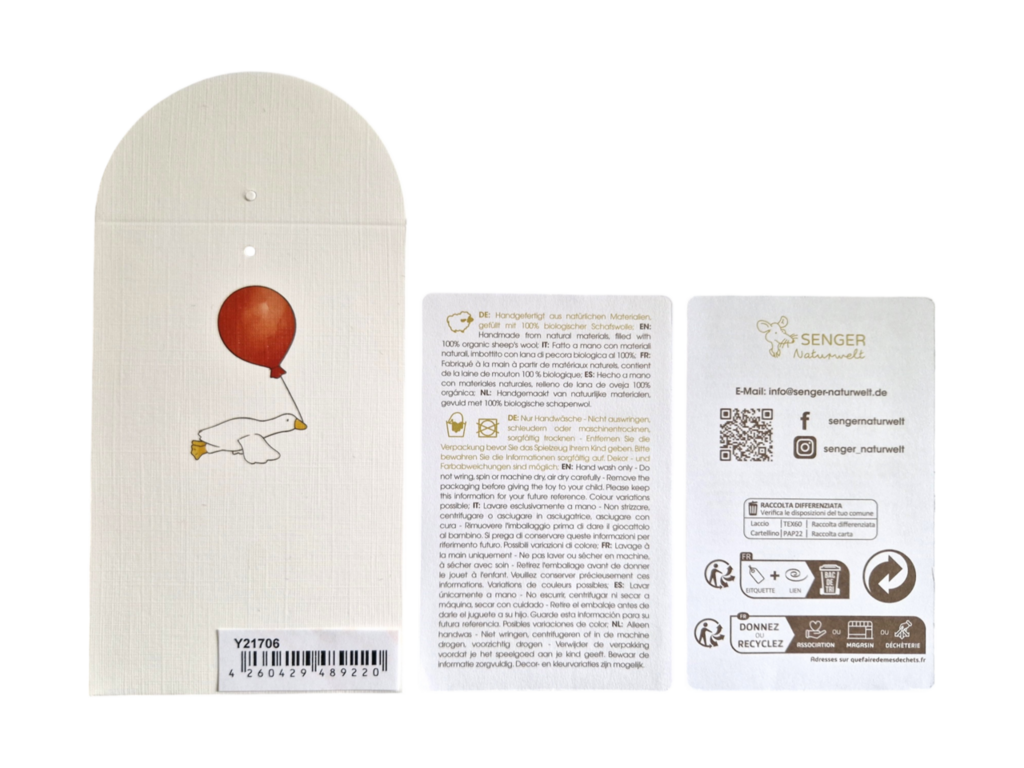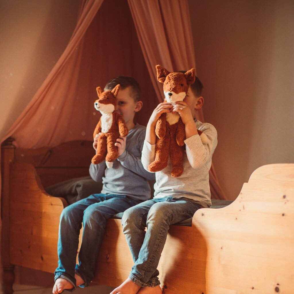 The large Floppy Fox Animal Dolls from the "Forest animals" collection by Senger Naturwelt is the ideal cosy companion for young and old. With soft, copper-coloured fur, it provides a sense of security while adding a natural touch to your home. Handmade in Europe, the floppy fox is not only a cuddly toy, but a stylish, eco-friendly room decoration too.