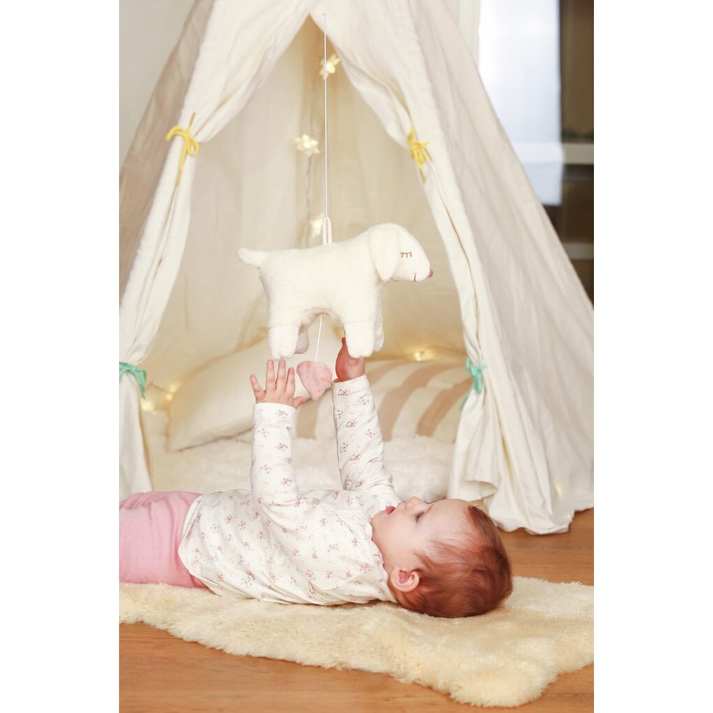 Falling asleep can often be a challenge for children, especially after an exciting day. At such times, a familiar melody, such as Brahms' well-known song "Guten Abend, gute Nacht", can help. The music box can either be hung up in a suitable place or - under parental supervision - taken to bed. Thanks to the high-quality, GOTS-certified materials, it is also safe to put in the mouth.