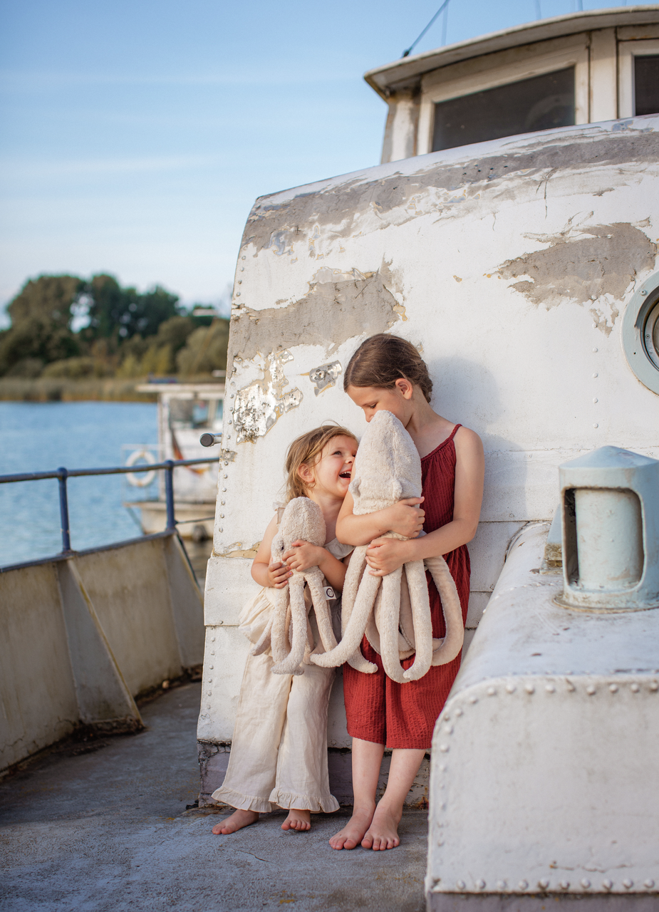 Unser kleiner Oktopus ist voller Charme – ein kuscheliger Begleiter für kleine Abenteuer. Handgefertigt aus GOTS-zertifiziertem Bio-Baumwollplüsch und gefüllt mit reiner Schafschurwolle. Im Inneren sorgt ein herausnehmbares Kirschkernkissen für natürliche Wärme oder angenehme Kühlung. Perfekt zum Spielen, Kuscheln und Liebhaben.