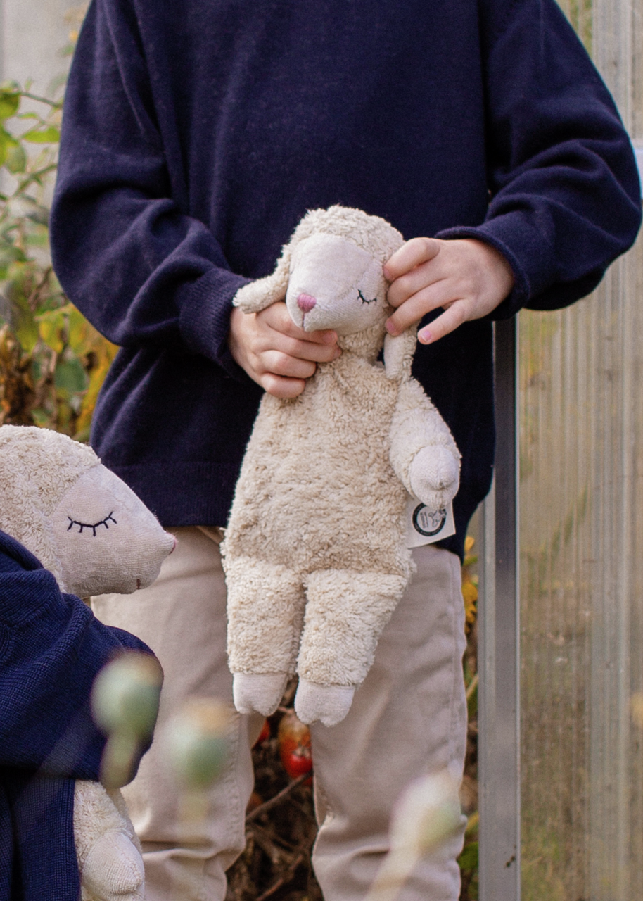 Unser kleines Schaf ist wie gemacht für Einschlafrituale, kleine Pausen und zarte Kuschelstunden. Außen natürliche Bio-Baumwolle, innen reine Schafwolle – dazu ein herausnehmbares Traubenkernkissen, das sanft wärmt oder kühlt. Es schenkt Geborgenheit, wo sie gebraucht wird – zu Hause, unterwegs oder beim Einschlafen.
